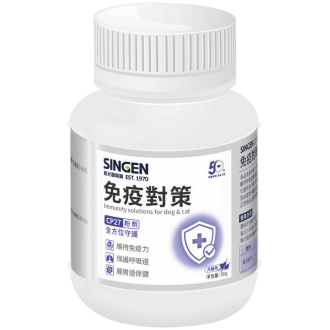 本品為草本配方,含有紫錐菊、魚腥草、桔梗及黨蔘萃取物,有助於犬貓全面維持呼吸道健康與日常防護力。搭配猴頭菇萃取物與 β-葡聚醣,支持消化道免疫平衡,維持腸胃健康。山桑子萃取物具天然抗氧化作用,幫助抵禦自由基對身體的傷害。並特別添加乳鐵蛋白與初乳蛋白,來自天然乳源的成分支持正常免疫功能與健康防線,全方位守護犬貓健康。